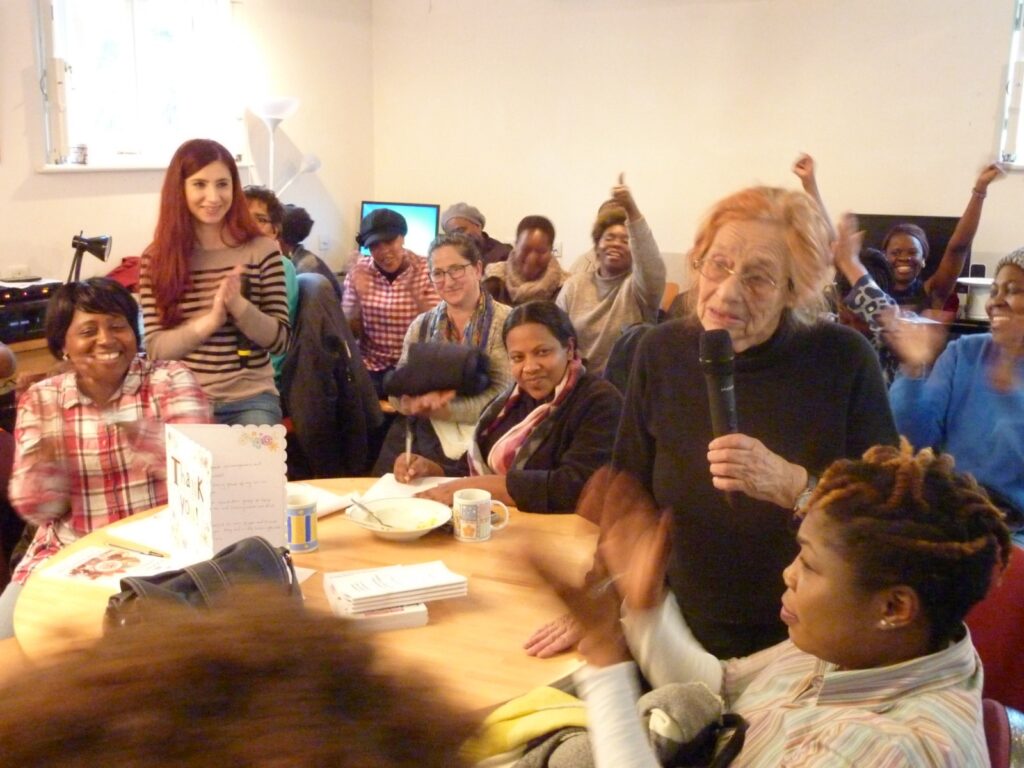 She fought for grassroots women’s voices and demands to be heard – from mothers and other carers, to asylum seekers, Indigenous farmers, women of colour, pensioners, prisoners, those with disabilities, survivors of institutional abuse, sex workers and more. We recall how brilliantly she spoke to the All African Women’s Group, a self-help group of asylum seekers who received her enthusiastically on one of her many visits to our Crossroads Women’s Centre in London.